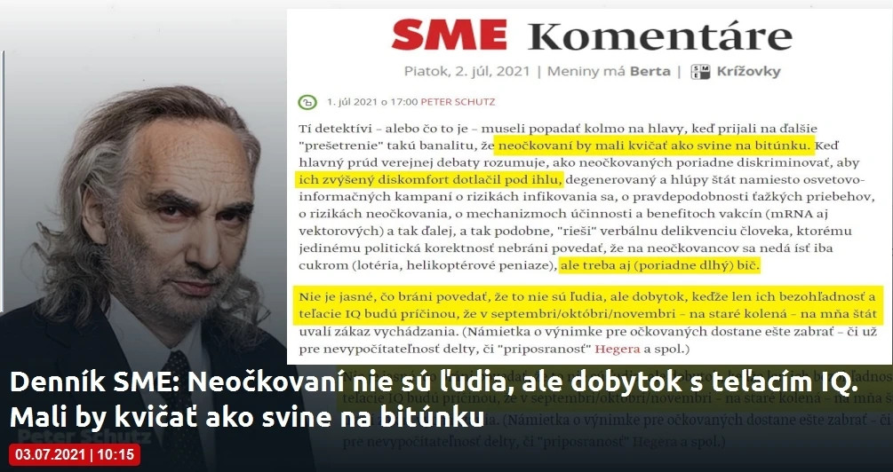 Média z něj doslova dělají nevinnou oběť nezávislé novinařiny, aniž by jediným slovem zmínily jeho nenávistné výroky vůči neočkovaným (viz zde a zde) z předchozích let.