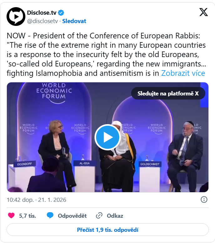 Mezi mnoha prohlášeními na WEF zaujalo také to, ve kterém byli opět terčem útoků původní Evropané. Údajně mohou za vzestup "antisemitismu a islamofobie" v Evropě.