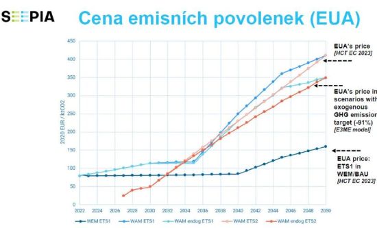Studie uváděla maximální cenu povolenky 70 € v méně příznivém scénáři.