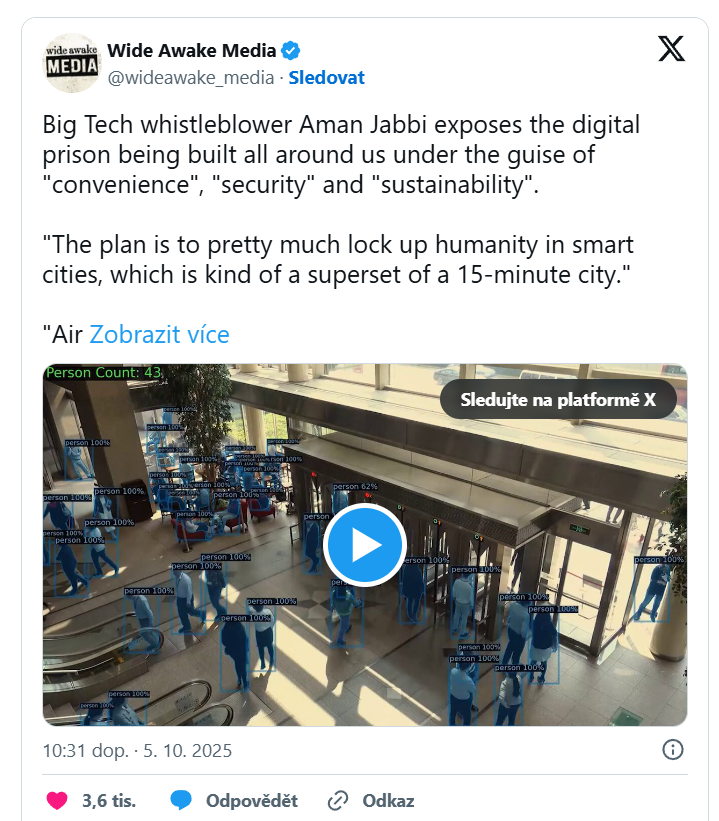 Informátor z Big Tech, který se podílí na přípravě budoucí technologie pro chytrá a 15minutová města, ve videu níže vysvětluje, jakým způsobem bude každý jedinec ve svém digitálním vězení střežen.